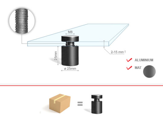 Distanzschrauben: Ästhetische Befestigung jeder Werbeplatte. Distanzschrauben werden verwendet, um Glas, Holzplatten, Werbeplatten, Schilder, Vitrinen und ausgewählte Materialien für Ausstellungsausstellungen zu befestigen. Wir bieten Aluminium-Distanzschrauben 13 x 13 mm (max. Plattenstärke 5 mm) für die Befestigung von Platten im A3- und A4-Format sowie Aluminium-Distanzschrauben 25 x 25 mm (max. Plattenstärke 15 mm) für die Befestigung größerer Platten.