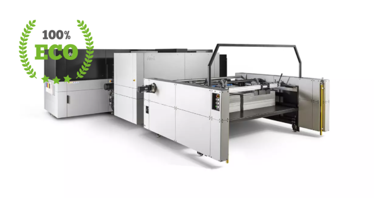 Durst ist Marktführer im Bereich wasserverdünnbarer Tinten. 100 % ökologische Tinten mit allen bestehenden Zertifizierungen in ganz Europa. Dies ist die erste Installation weltweit! Der Druck erfolgt im Vollautomatisierungsmodus auf Papier, Karton, Wellpappe, Wabenplatten, Kapaplatten, Katz, Dispa usw. – hauptsächlich für POS, Displays, Verpackungen usw. Ausführung CMYKlClM. Offset-Druckqualität.